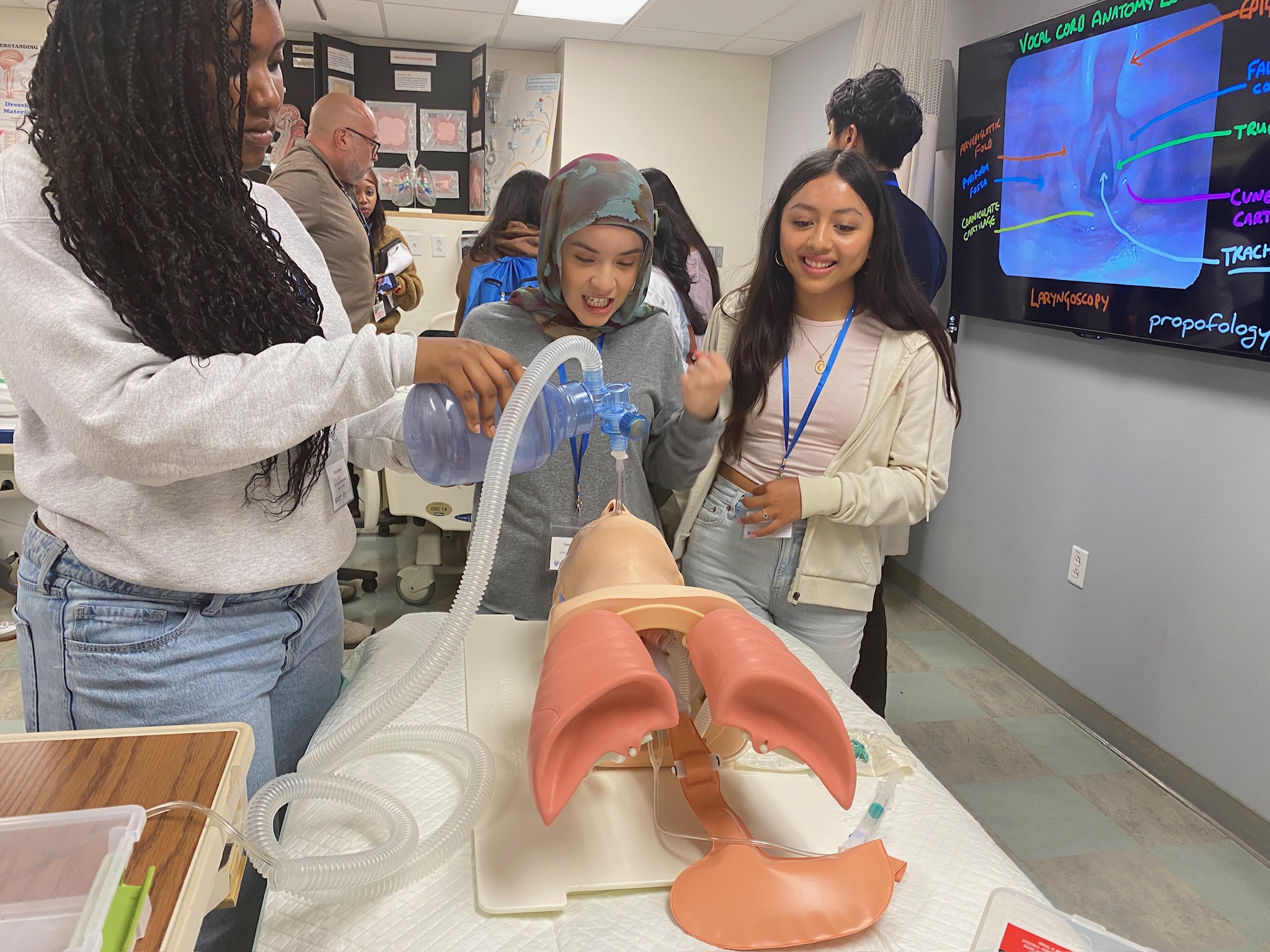 Hands-on workshops allowed students to explore clinical procedures such as suturing, IV placement, taking vital signs, intubation, and more. A visit to SMU’s Gross Anatomy Lab offered a rare chance to examine human anatomy firsthand—deepening their appreciation for the complexity of the body and the responsibility of providing care.